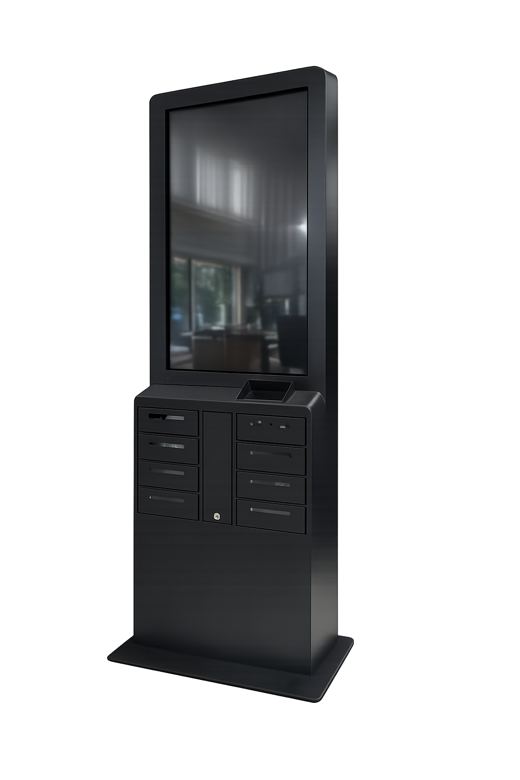 Casiers individuels à code PIN. Multi-connecteurs (USB-C, Lightning, Micro-USB). Votre visiteur recharge en toute sérénité.